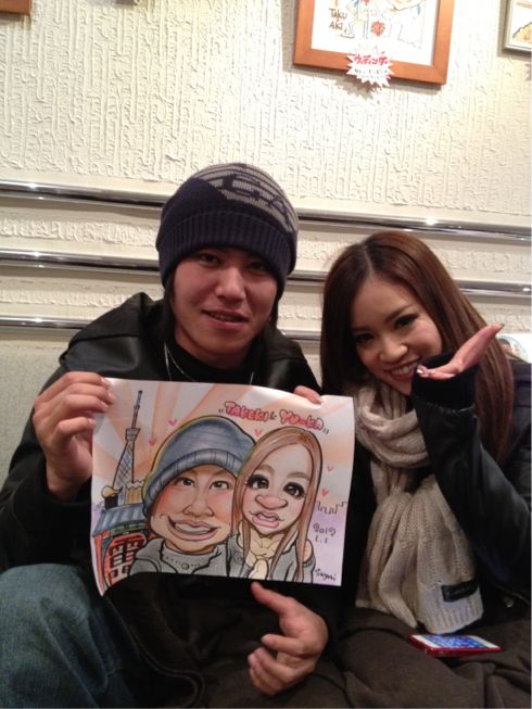 遠距離中のふたりをカリカチュアで一緒にかけて幸せです(=´∀`)